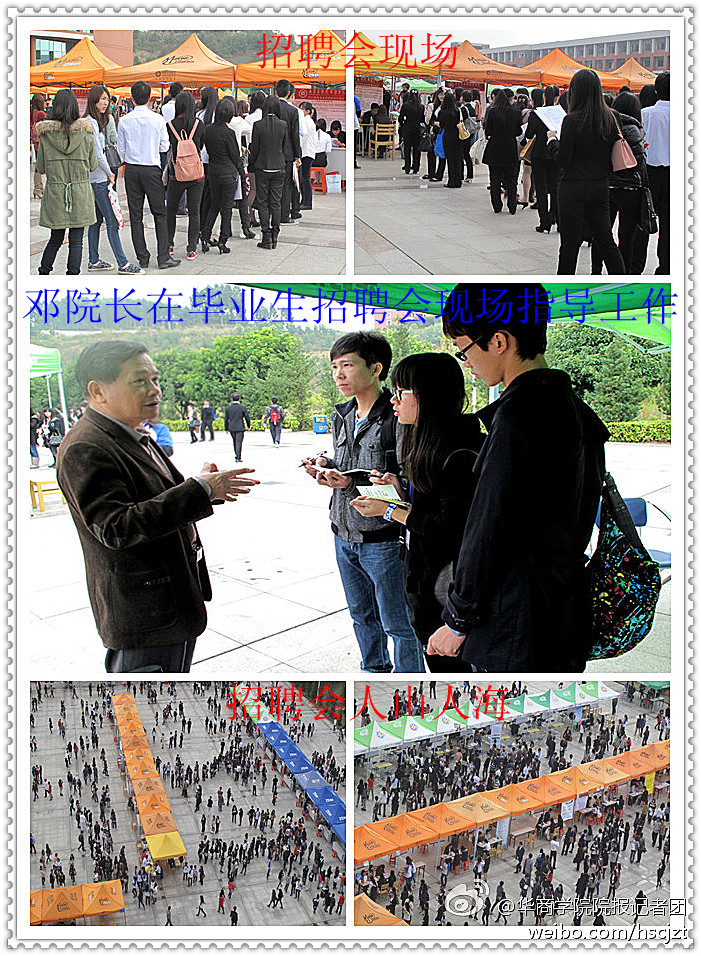 2012年12月21日上午,我院2013届毕业生校园供需招聘会在图书馆广场如火如荼进行。本次招聘会共有180多家珠三角中小企业设置招聘摊位,吸引了一大批应届生前来咨询应聘。学院副院长邓基泽在现场视察时表示:对毕业生充满信心,相信他们能找到合适的工作;同时学院也会对有困难的毕业生给予帮助。