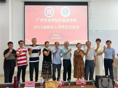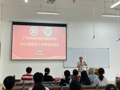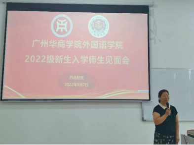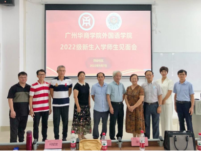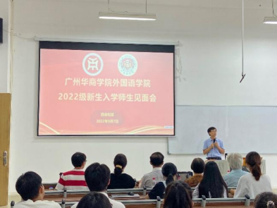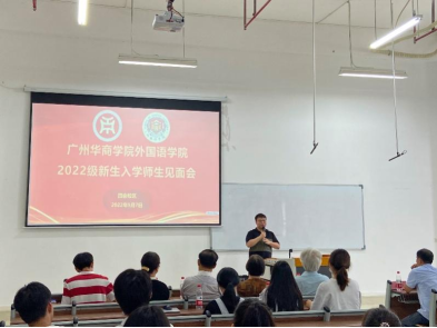 2022年9月7日上午10时,2138cn太阳集团城在2138cc太阳集团四会校区6号楼202教室召开2022级新生入学师生见面会,院长王琢教授、副院长张丽教授、党委副书记兼副院长陈少鸿老师、日语系主任李旭光教授、商务英语系主任周竹南教授、翻译系主任杨润秀教授、英语系主任刘阳副教授、大学英语部主任贺学贵副教授、学工办副主任何顺发老师、四会校区辅导员陈禄汉老师出席本次见面会,大会由学工办副主任何顺发老师主持。