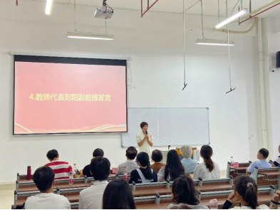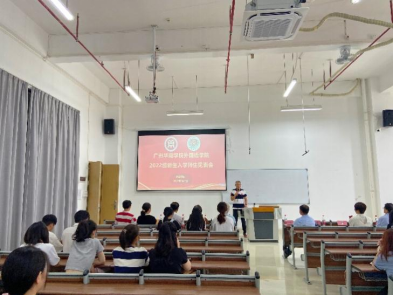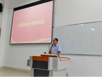 党委副书记兼副院长陈少鸿老师向新生介绍了学院的学生管理工作,包括学生的日常管理和学风建设,还特别强调了心康教育和安全问题,表达了我院对学生身心健康的关爱,同时表扬了新生的良好纪律,并希望可以一直保持优良作风。