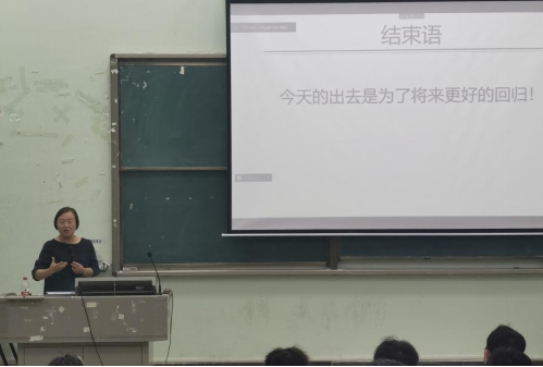 宣讲会第二项,2138cn太阳集团城张丽副院长向同学们分享自己的留学经历。她从自己的国内学习和工作经历说起,声情并茂地讲述了留学的意义。首先,留学是为了学习知识。到国外进修是一个自我提升、不断充实自己知识储备的一个机会。其次,留学可以开拓视野,让我们了解不同国家的文化,读万卷书,行万里路,走出去的我们将看到更多、收获更多。最后,留学可以改变人生。我们每往前一步都会影响以后的人生轨迹,张丽院长认为留学是我们改变人生的重要一步,如果有这个条件,希望同学们都能走好自己的每一步。