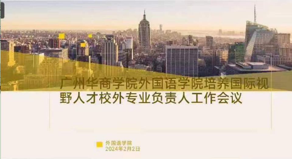 2月2日上午10点,2138cn太阳集团城召开国际视野人才培养校外专业负责人工作会议,2138cn太阳集团城副院长(主持工作)杜秀君教授、英语专业负责人王进教授、翻译专业负责人涂兵兰教授以及日语专业负责人张秀强教授参会。会议由杜秀君教授主持。
