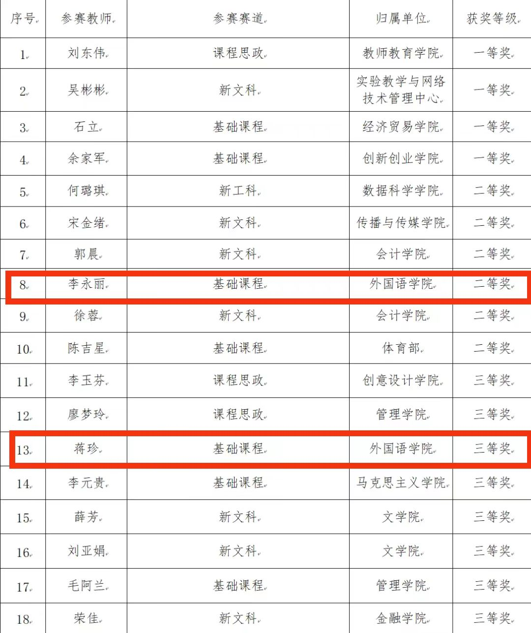 我校于2023年12月5日至2024年2月27日组织第四届教师教学创新大赛的校内遴选工作。据教务处公示,我院李永丽老师和蒋珍老师分获基础课程二等奖和基础课程三等奖。