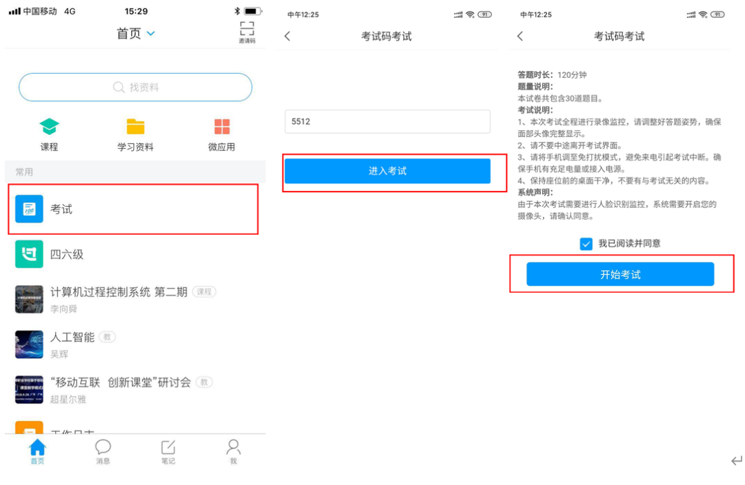 学校发布了考试码,首页点击考试码考试,输入考试码,进行考试