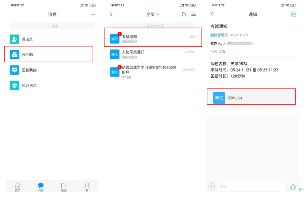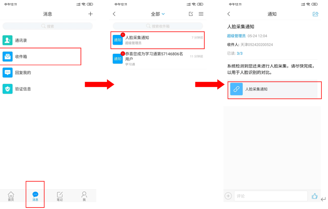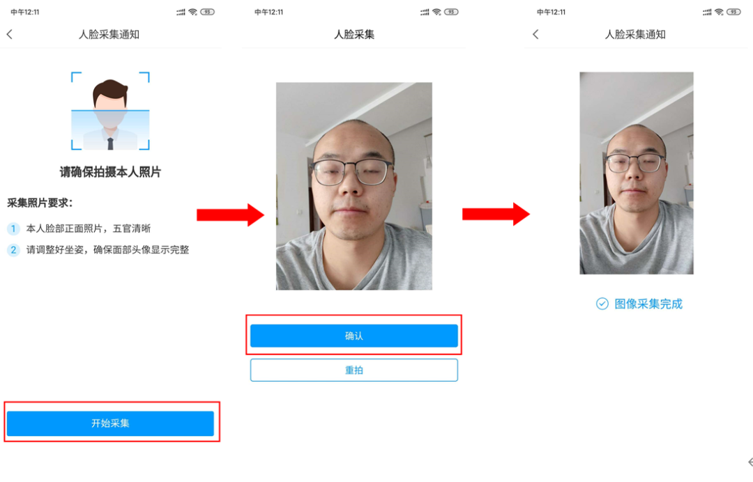学校管理员发布了人脸采集通知,点开通知进行采集。