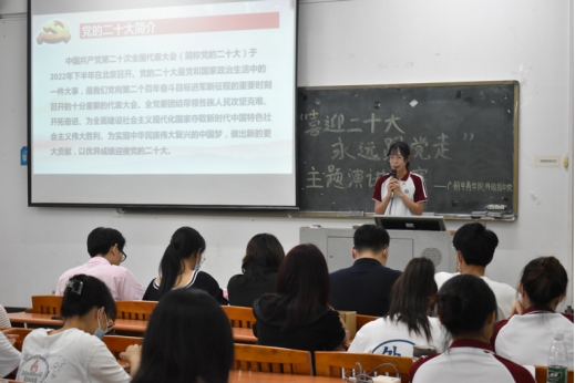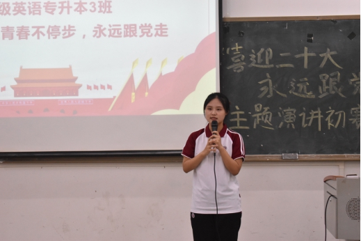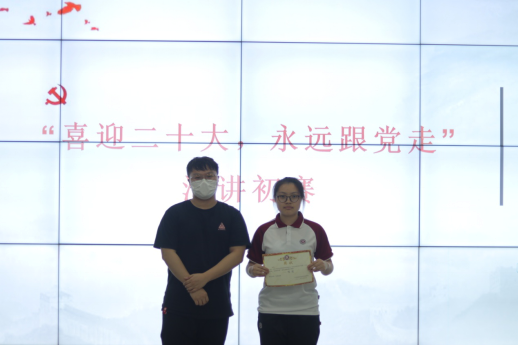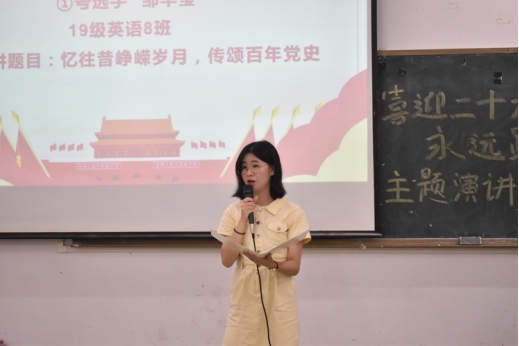 为迎接中国共产党第二十次全国代表大会的召开,大力弘扬以爱国主义为核心的伟大民族精神,加强大学生思想政治教育,增强当代大学生主人翁意识和社会责任感,强化使命担当,培养具有远大理想、家国情怀、堪当大任的新时代大学生。根据安排,我院组织开展了“喜迎二十大、永远跟党走、奋进新征程”主题演讲比赛。
