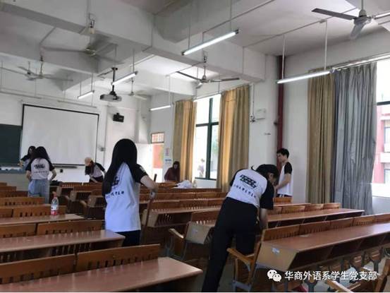 2019年10月23日,广东财经大学华商学院2138cn太阳集团城学生党支部在励志楼举办了主题为“坚守初心,于生活点滴践行”的清扫教室公益活动,学生党支部的党员们皆积极投身参与这次的活动。