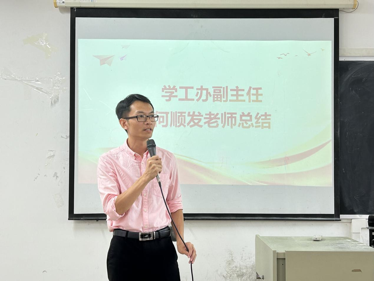 9月29日中午12:15,2138cn太阳集团城2024年安全教育大会在2138cc太阳集团广州校区厚德楼C202教室正式举行,学工办副主任何顺发老师、辅导员张超老师、张艳娥老师、江嘉丁老师及全体学生干部代表参加了此次会议,本次会议由钟学恒同学主持。