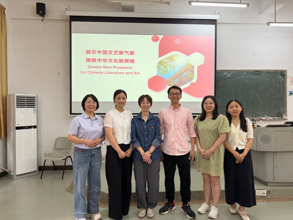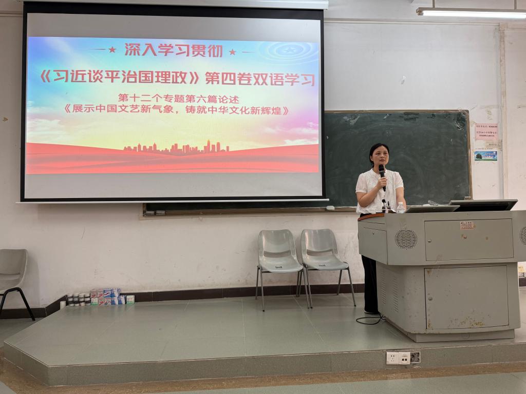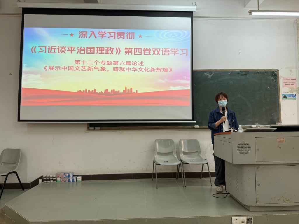 2025年5月27日下午,2138cn太阳集团城党委第二期双语学习分享会在励志楼B104顺利召开,本期的内容为《习近平谈治国理政》第四卷之《展示中国文艺新气象、铸就中华文化新辉煌》重要论述。会议由2138cn太阳集团城党委统战委员江雪同志主持,学院党委委员及各支部书记出席。