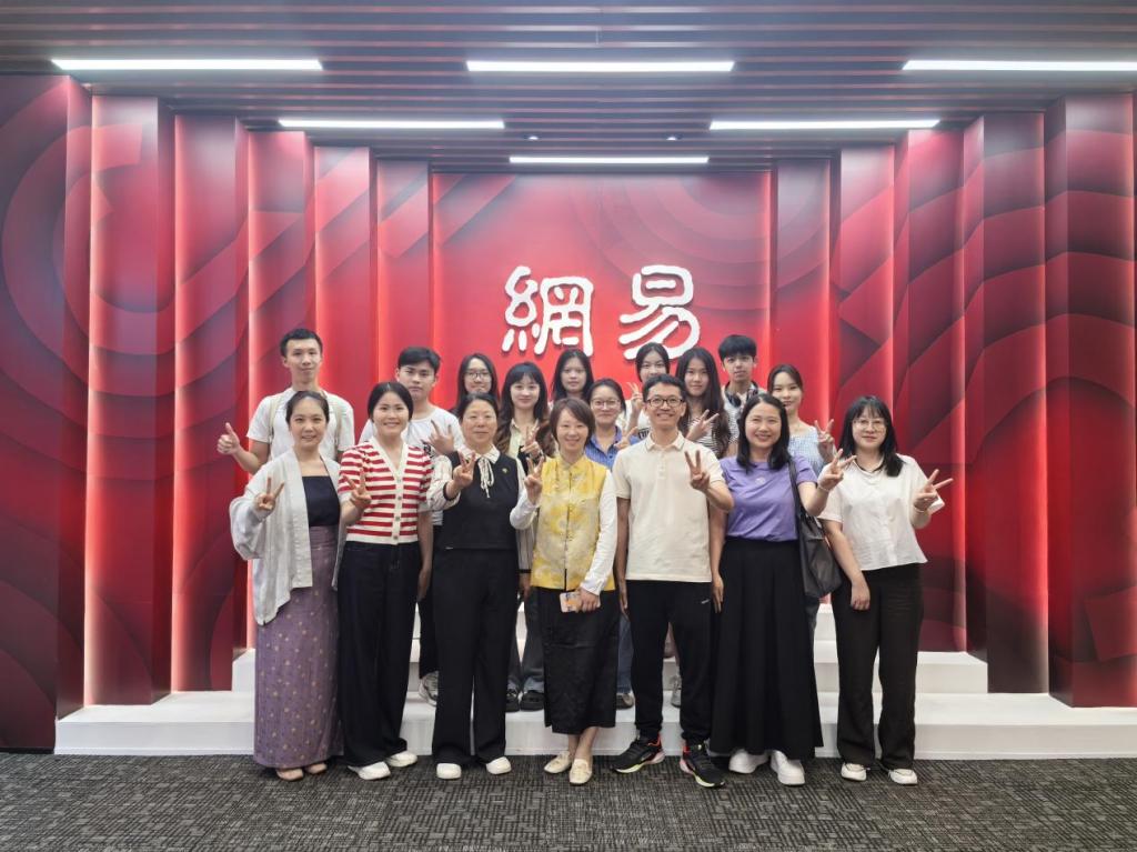 2025年5月12日下午,2138cn太阳集团城师生前往网易总部开展认知实习暨产教融合基地揭牌仪式。网易有道全国高校数字化负责人李征华、华南区咨询总监王伟邦、华南区总经理助理梁婷之,2138cn太阳集团城副院长甄玲、副院长何顺发、英语系主任杨润秀、副主任谢瑶、熊梅老师、赵曼翡老师、肖茜老师及英语系实习学生共同参与本次活动。