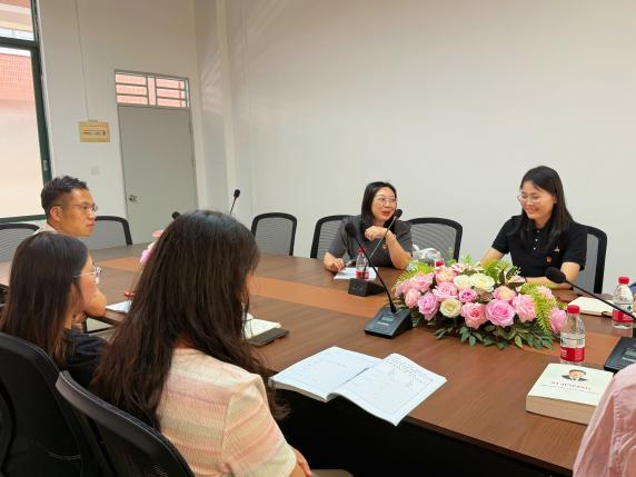 组宣委员谢瑶同志分享了自己对文化专题学习的感悟,尤其就“中国共产党”一词的英译与大家展开探讨。她指出,双语学习项目不仅可以帮助师生了解中国时政话语体系,还能从研读《习近平谈治国理政》英文版来加深我们对中文表述的理解,体现了双语学习在提升语言能力与文化理解方面的双重价值。